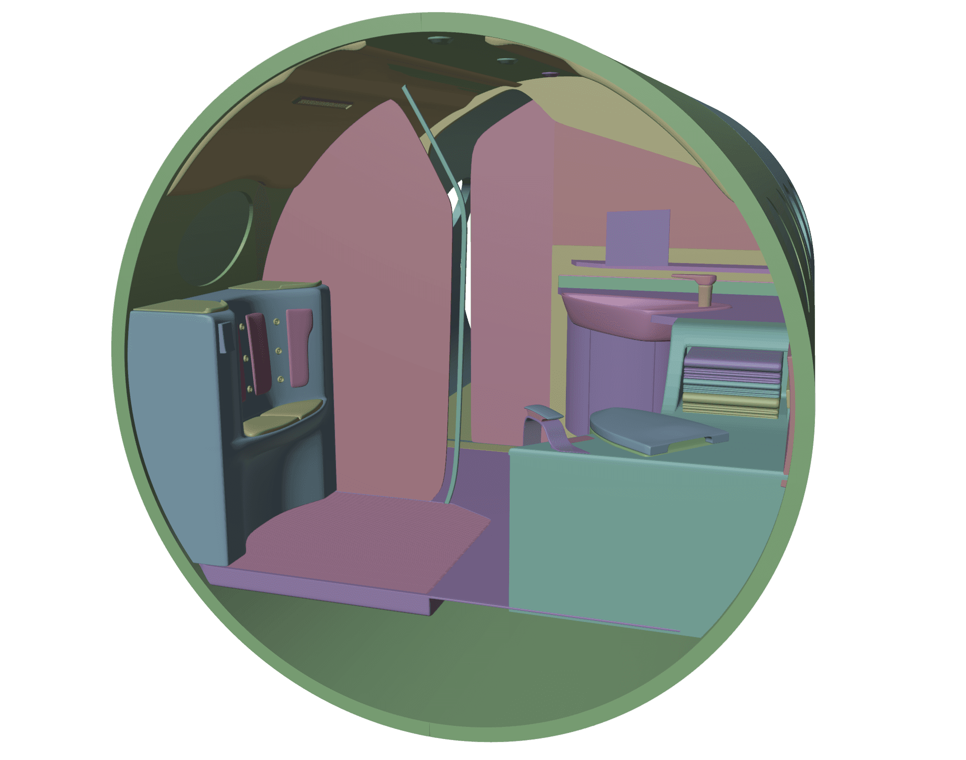 Under the guidance of a designer from Dassault Aviation and in partnership with Hugo De Lavenne, we created a cardboard mockup using Dassault’s design thinking methods to study the ergonomics of a jet interior. We focused on designing a "bathroom" space seamlessly integrated as an extension of the jet’s "travel lounge" area.